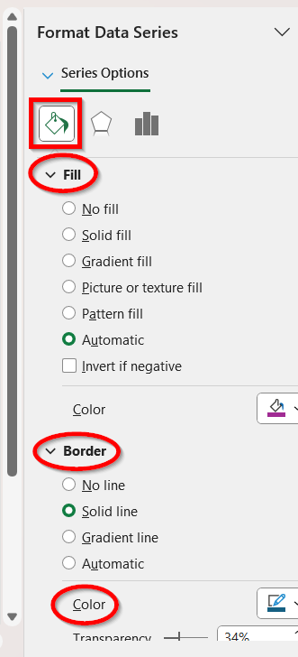 ➤ Click on the Fill section and you will find Fill, Border, Color and other options to change that particular column however you like.