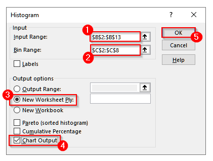➤ Now, select New Worksheet Ply and check the box Chart Output. Finally, click OK.