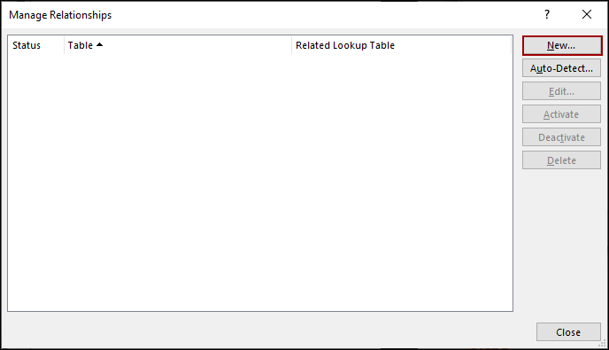 This will open the Manage Relationships dialog box.