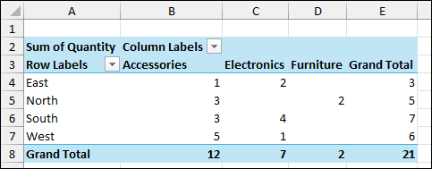 As a result, your Pivot Table will now display the Sum of Quantity for each Region (from the Customers table) broken down by Category (from the Products table). This demonstrates the successful integration of data from multiple tables through defined relationships.