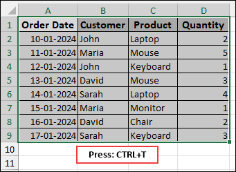 This action will convert your selected data range into an Excel table, automatically applying basic table formatting.