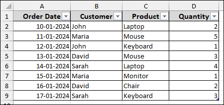 ➤ Convert your raw data ranges into named Excel tables (e.g., Sales, Products, Customers).