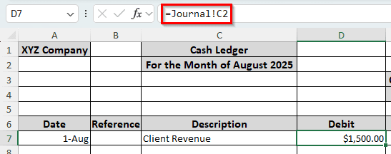 ➤ First, import the transactions that are related to the ledger from the journal using the following formula for each cell: