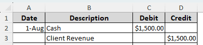 ➤ The first transaction is a Client Revenue. We will use the description that is named against the cash. As cash is debited, we have to put that into debit as well.
