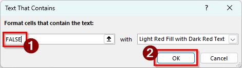 ➤ Select F2:F13 cells and go to the Styles group of the Home tab. From there, go to Conditional Formatting > Highlight Cells Rules > Text that Contains
