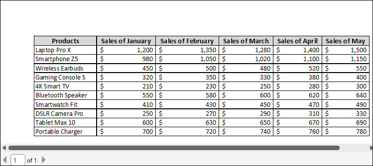 Opening the PDF, you will see the “Sales of May” column on a completely different page. This is a classic Excel to PDF problem. Now, let’s explore how to fix it using some simple methods.