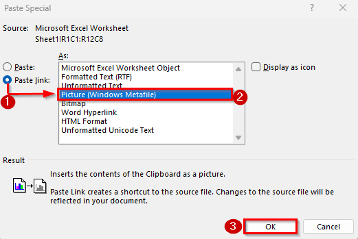 ➤ Choose Picture (Enhanced Metafile) from the list.