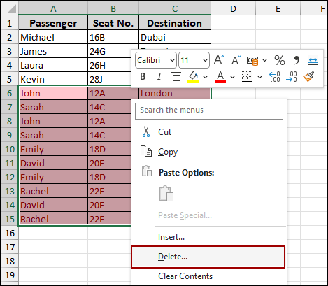 ➤ Choose the highlighted duplicates from the bottom and click Delete from the context menu.