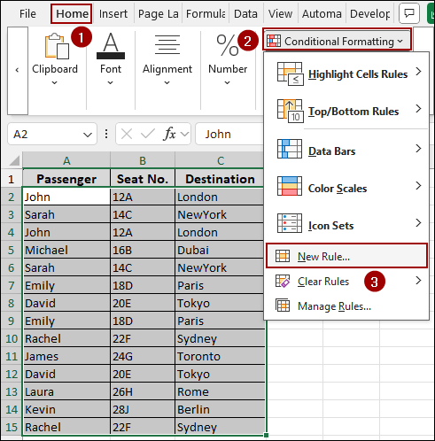 This method is similar to the previous one. Here, we will use a formula inside the New Formatting Rule window to highlight duplicates. Then, sort and delete the highlighted duplicates to get the unique values only.