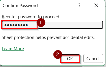 This method allows us to lock specific parts of our Excel sheet while granting edit access to selected ranges. It is good when we want team members to update only certain cells, like “Status” updates in a project tracker, without modifying the rest of the data.