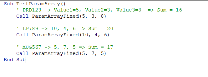 Sub ParamArrayFixed(ParamArray values() As Variant)