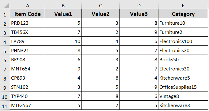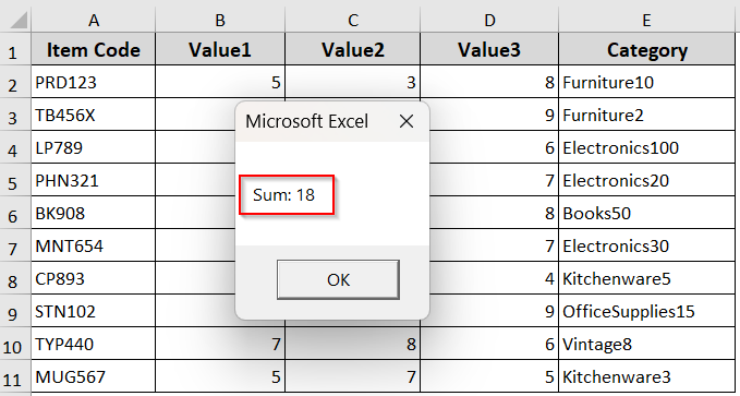 arr = Array(5, 3, 8) ' Value1, Value2, Value3 for PRD123