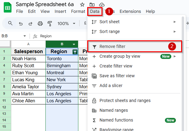 ➤ You can also go to Data from the Menu > click the Remove Filter option.