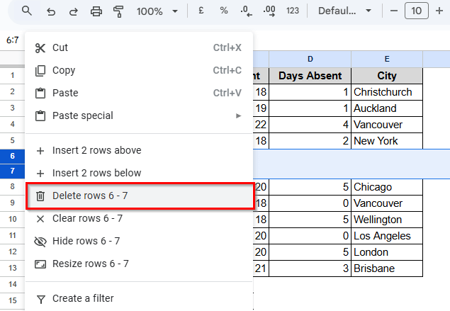 ➤ Now right click > click Delete row to delete the previously copied row to avoid duplicate rows.