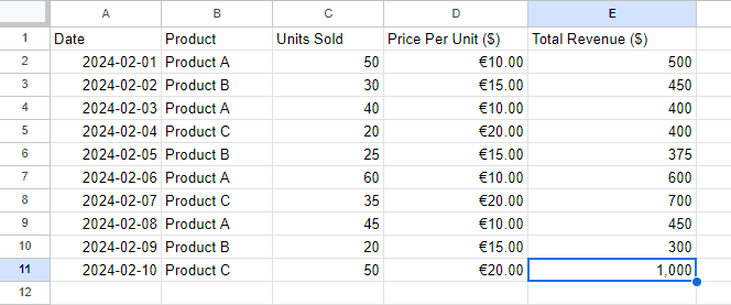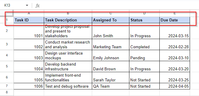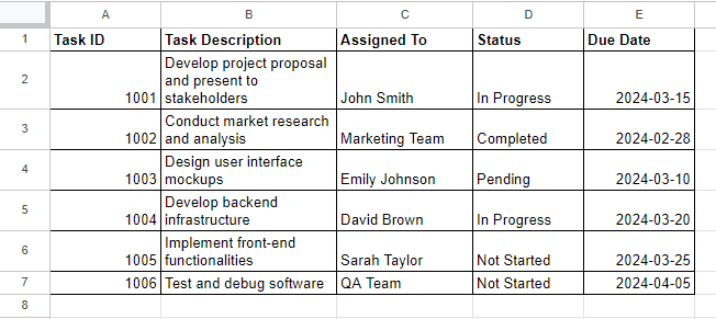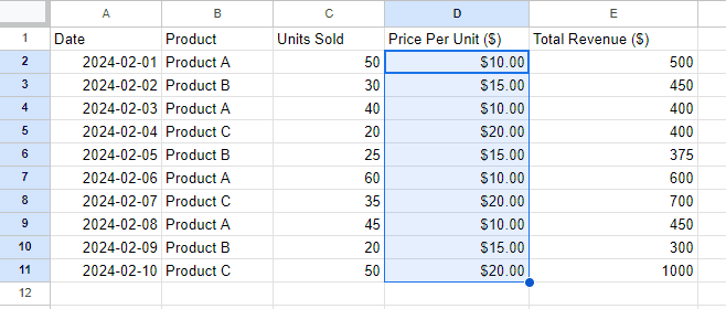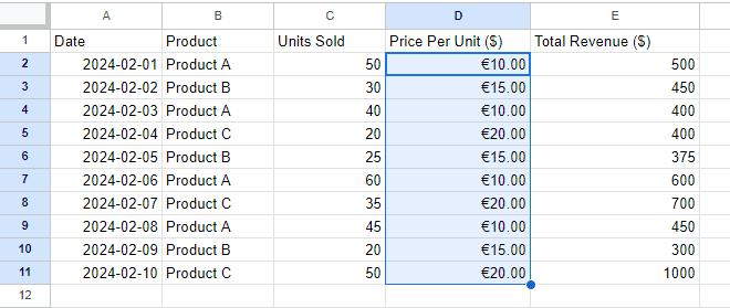 Now we’ll discuss different types of formatting options available in Google Sheets and see how they work with our particular dataset with no format initially.